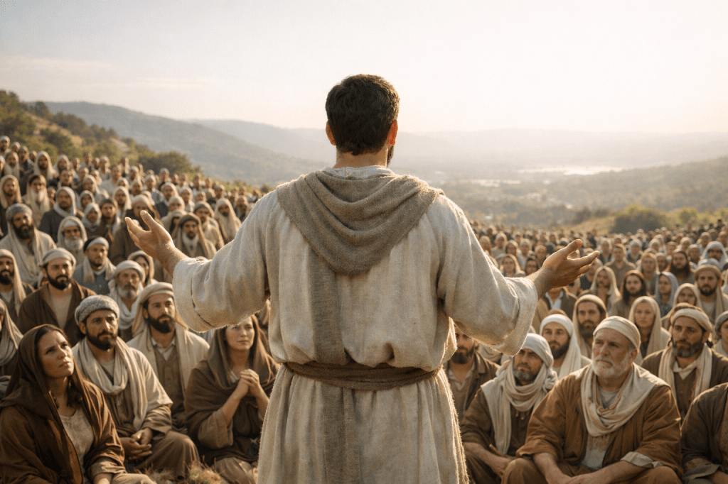 Jesús de Nazaret impartiendo el «Sermón de la Montaña» (Mateo 5:38-48)